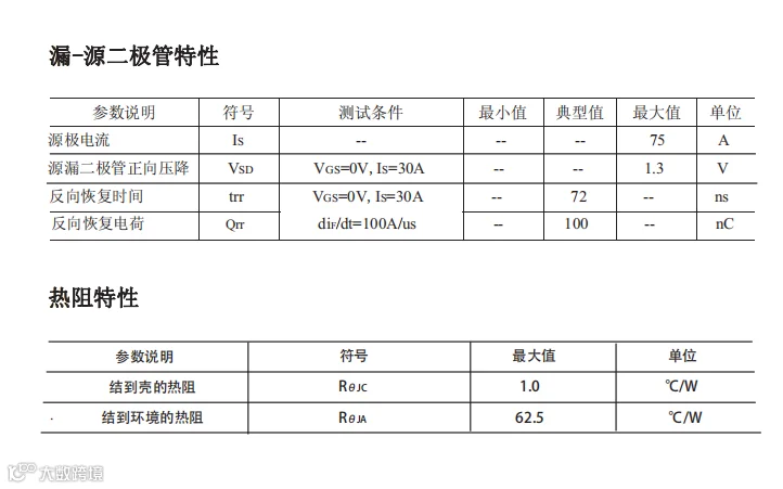 除此之外,还具有75A ,100V, RDS(on) = 10mΩ(typ)@VGS=10V ,开关速度快的特点。