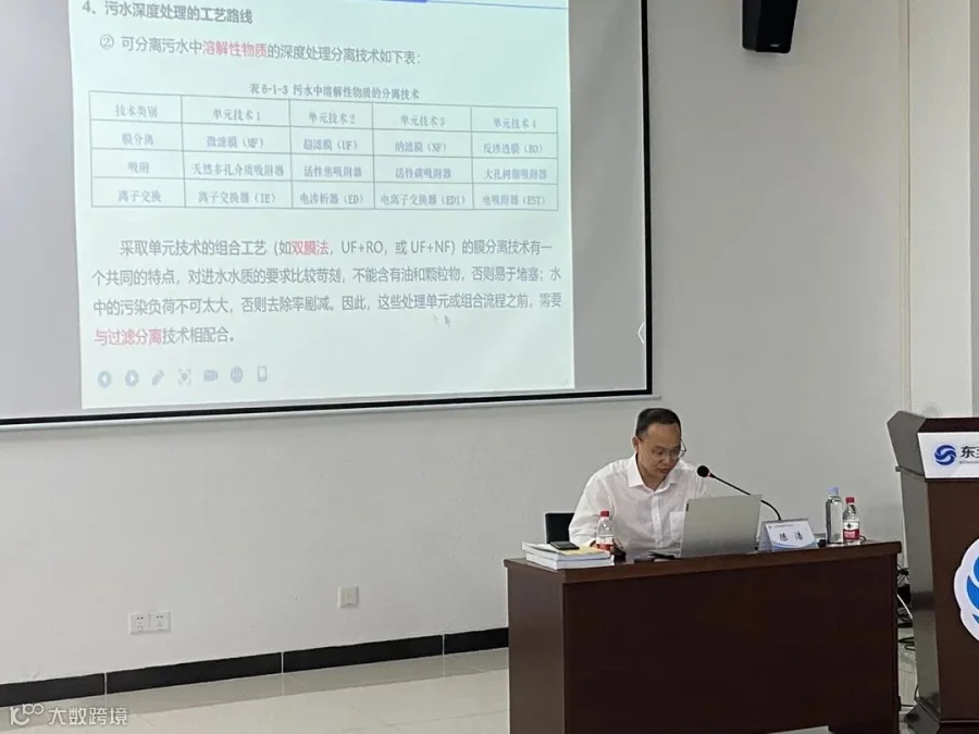梁康强老师就工业废水处理工艺与运行管理进行授课