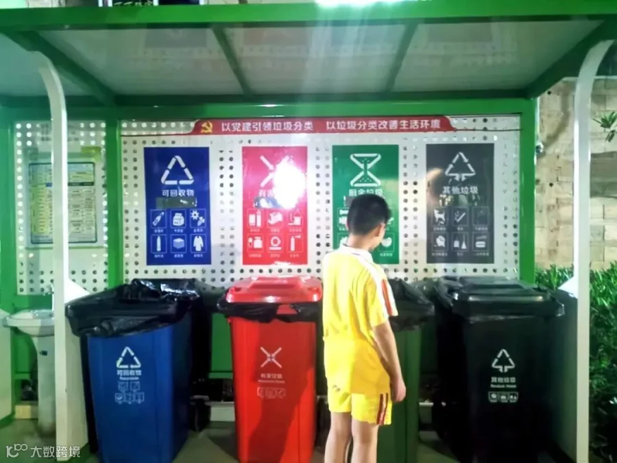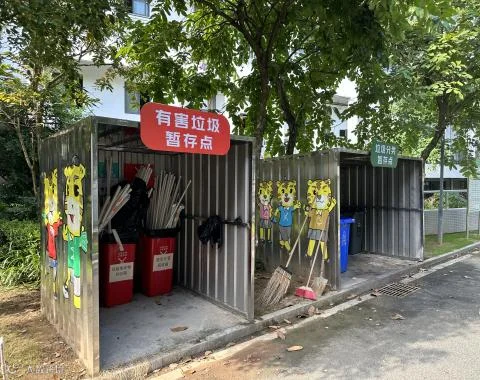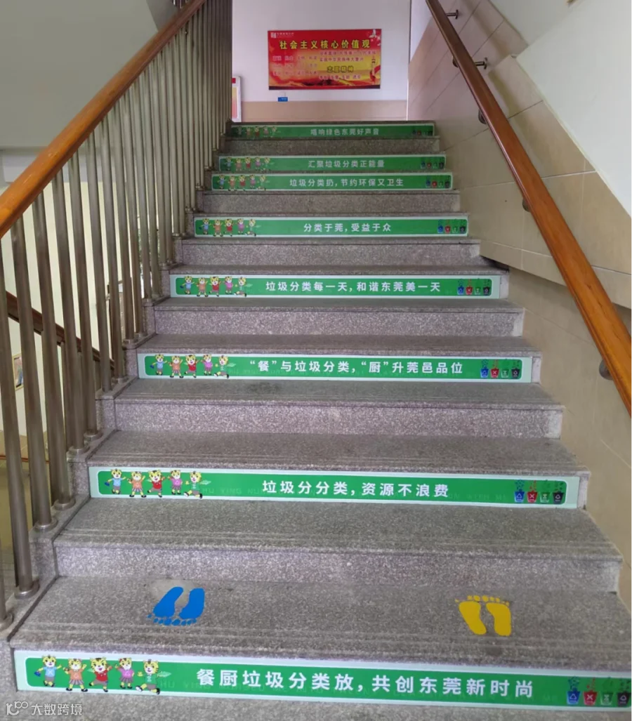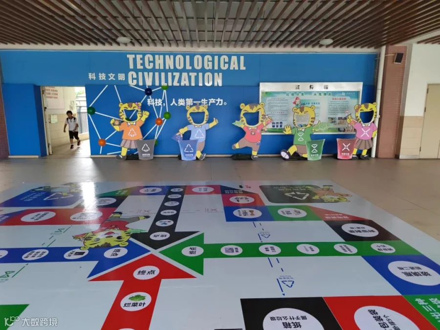 行走在校园内,就可以在教学楼走廊、楼梯、垃圾投放点等醒目位置看到带有“虎宝”的特色垃圾分类元素,有的还能打卡互动,趣味十足。