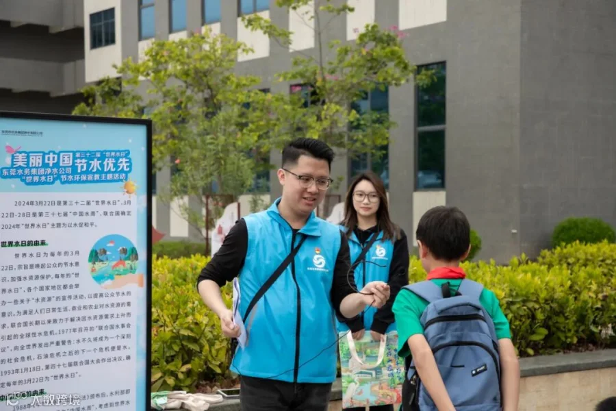 3月22日是第三十二届“世界水日”,3月22日-28日是第三十七届“中国水周”,为紧密结合绿美东莞生态建设工作部署,助力“百千万工程”建设,东莞市水务集团净水有限公司(以下简称:净水公司)以东莞市水务集团“莞水文化”为引领,充分发挥国企的责任与担当,开展“美丽中国 节水优先”——净水公司“世界水日”节水环保宣教主题活动,“蓝卫士”和“红先锋”讲解老师带领东莞市南城阳光第四小学的五年级学生们亲临水质净化厂,现场感受污水变清水的奇妙历程,进一步提高青少年一代的环保意识和节水意识,引导他们珍惜水资源、保护水环境。