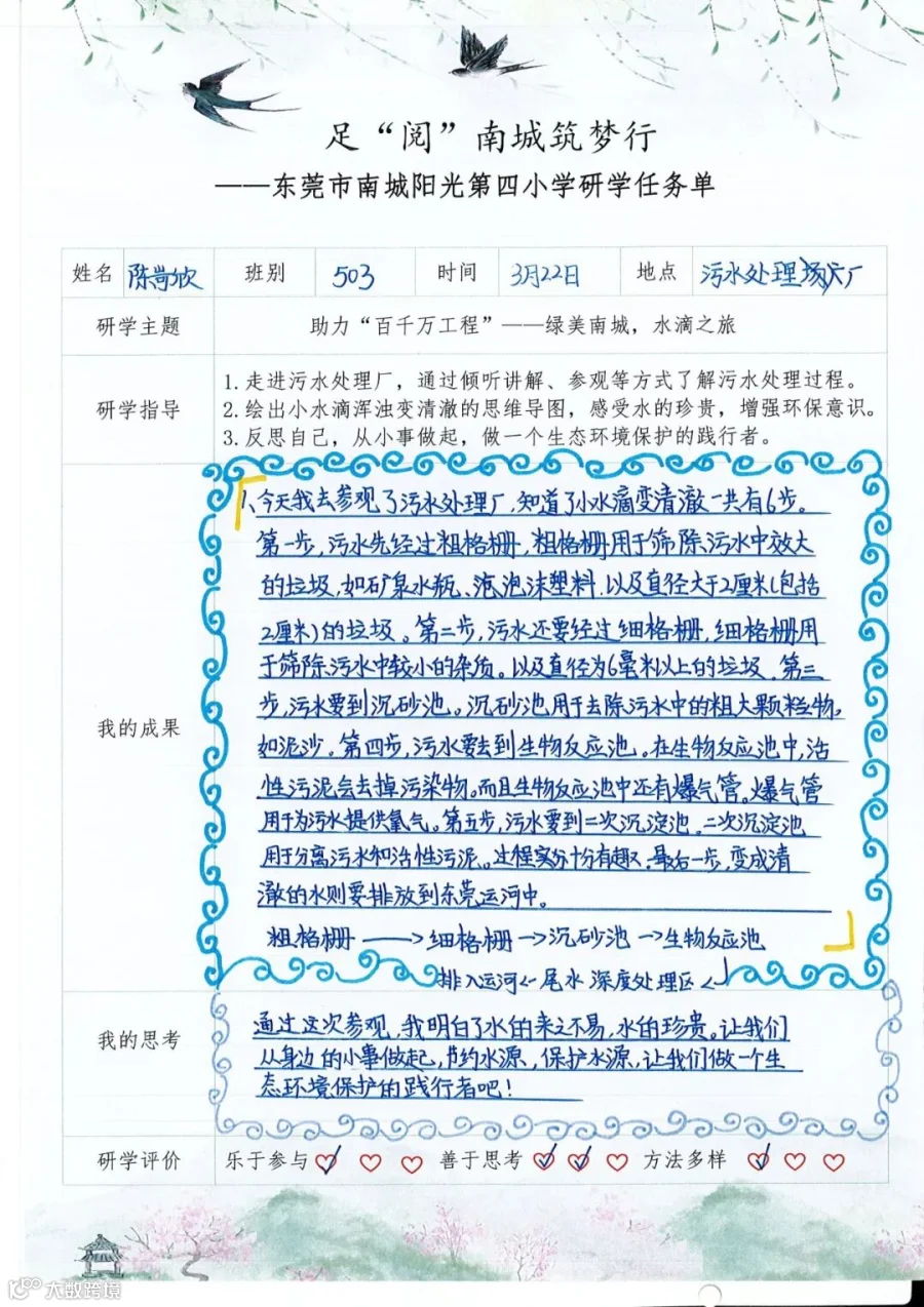 一份份手抄报,不仅展现了丰富的创意,更像一颗颗种子,将爱水、节水的环保理念种在了孩子们的心中。走进水质净化厂活动虽然已经告一段落,但是在参观过程中给孩子们留下的内心感受以及环保意识将一直留存在孩子们的心中。