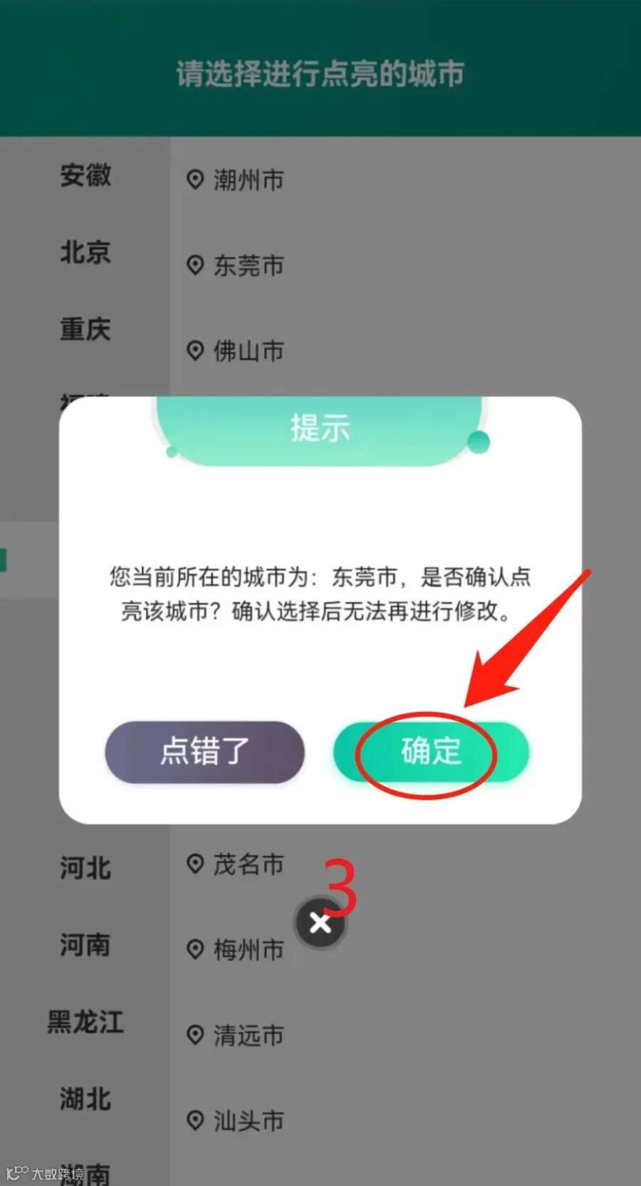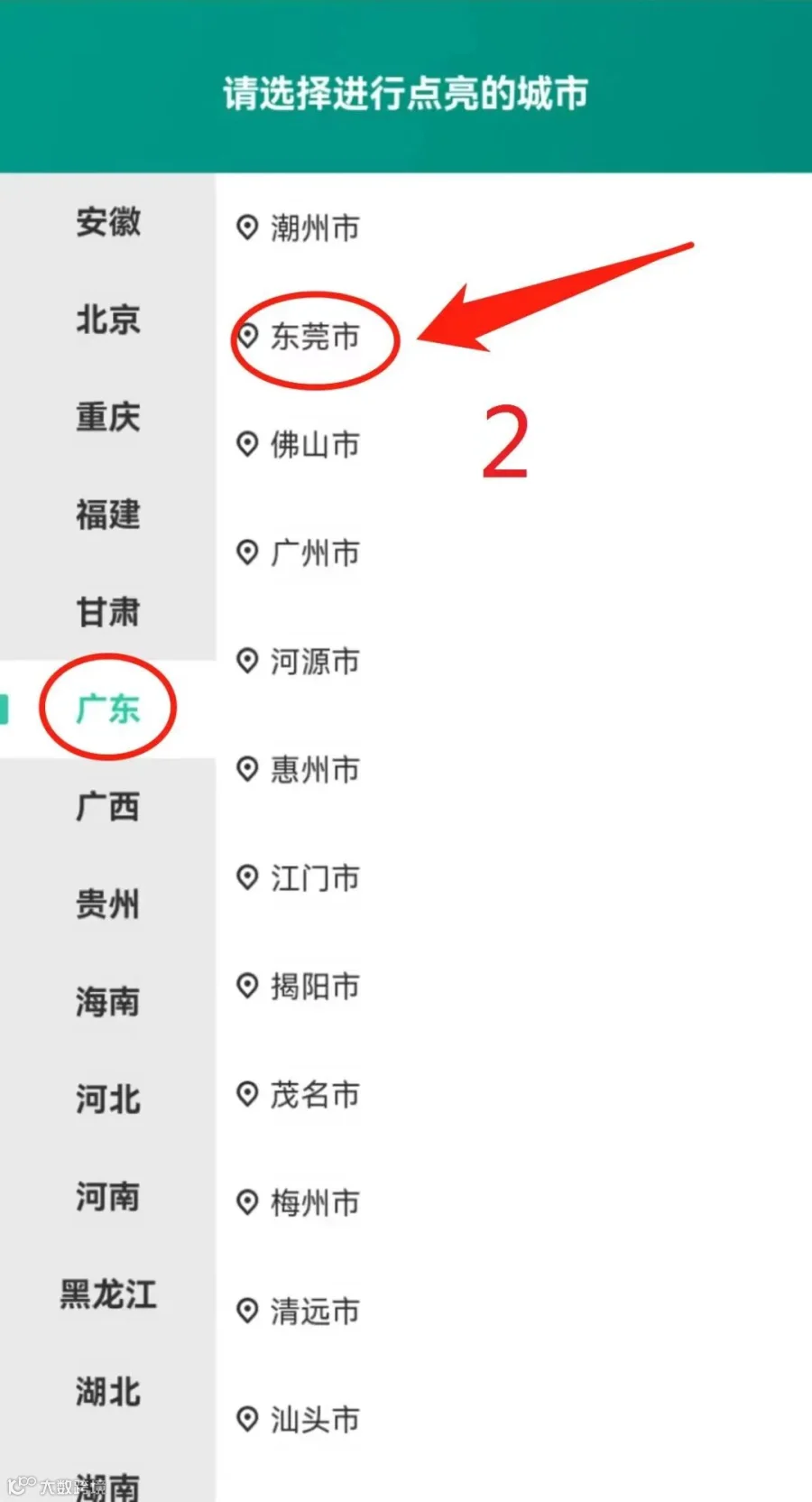 玩法其实很简单,市民进入小程序页面后,左侧点击“参与点亮”,按照提示定位东莞即可为东莞“点亮”!