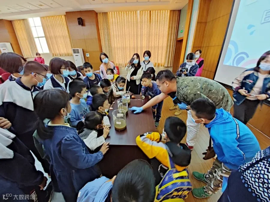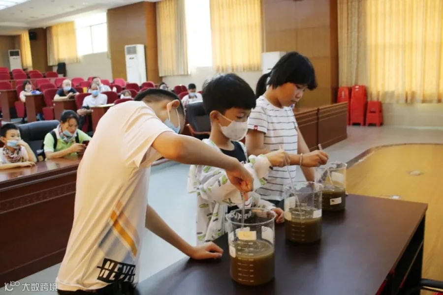 随后,讲解员通过一个污泥沉降实验模拟二沉池中污泥沉淀的过程,市民们通过观察泥水混合液的变化,了解到通过增加絮凝剂后,污泥的沉降效果更佳,速度更快,上清液更清澈。
