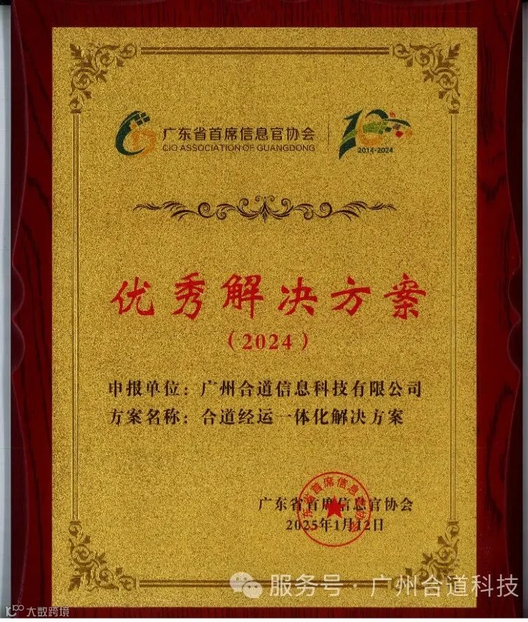 同时,为全面落实国家对企业数字化建设的战略部署,加快推动我省数字化转型升级等各项工作的开展,广东省CIO协会开展了“2024年度优秀解决方案”评选活动,并在南方IT春晚暨协会十周年欢庆盛典现场进行奖项颁发。在122份参评项目中,合道科技经运一体化解决方案凭借专业性、实用性以及出色的业务价值,成功荣获2024年度优秀解决方案。