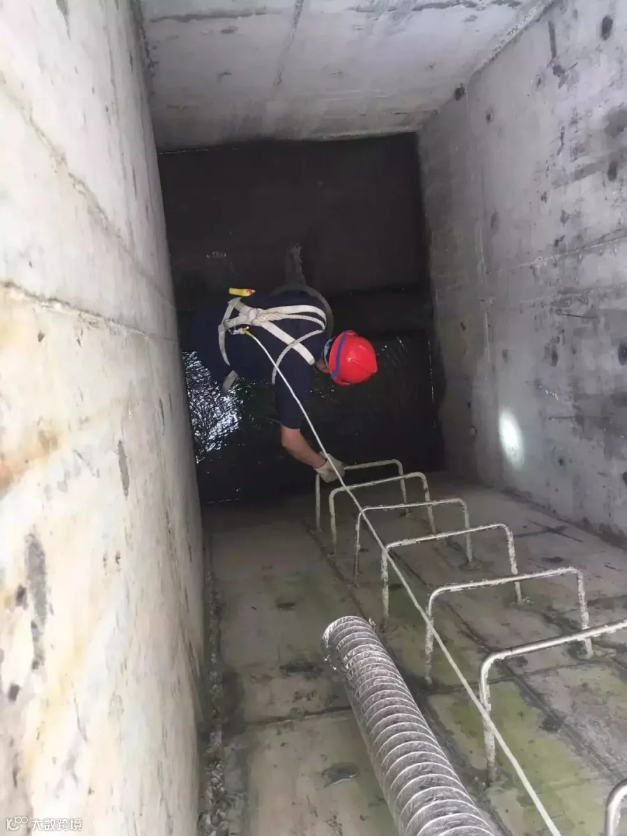 结合现场实际情况,对厂区二沉池放空井内(深度6米)阀门进行检修作业。