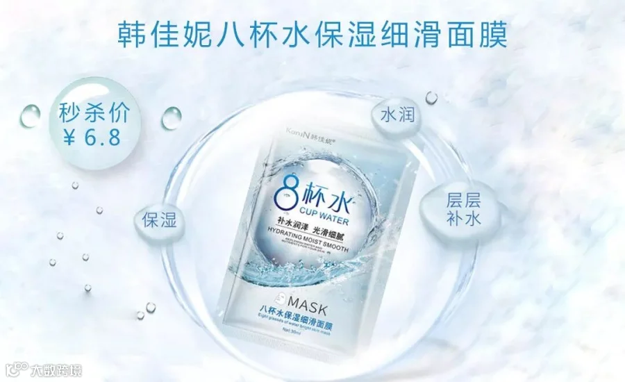 认准八杯水保湿细滑面膜,一片敷出弹润水光肌!