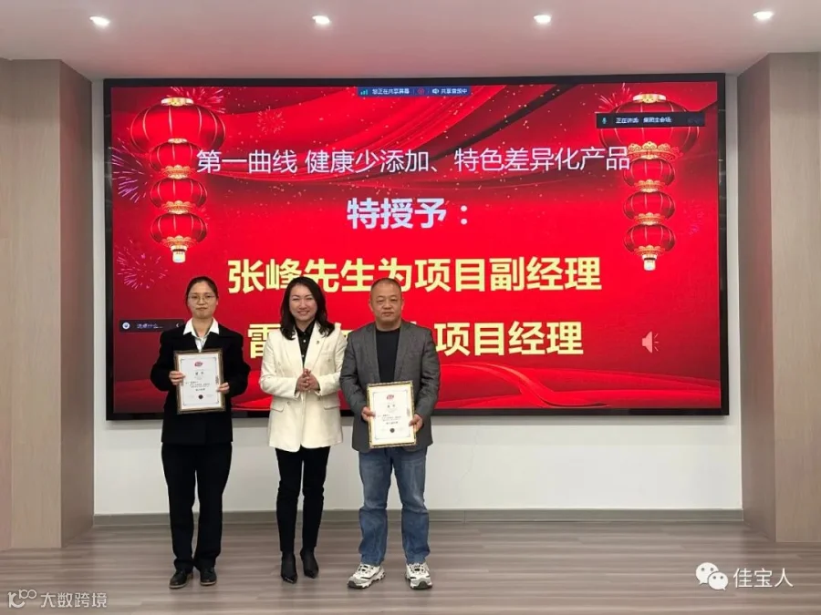 为更好持续深化战略实施,佳宝集团为设立的生态链组织的项目经理颁发名誉奖项。希望接下来的日子里,各项目经理带领团队一起敢于探索、敢于研发、敢于创新,为实现极致产品而努力!