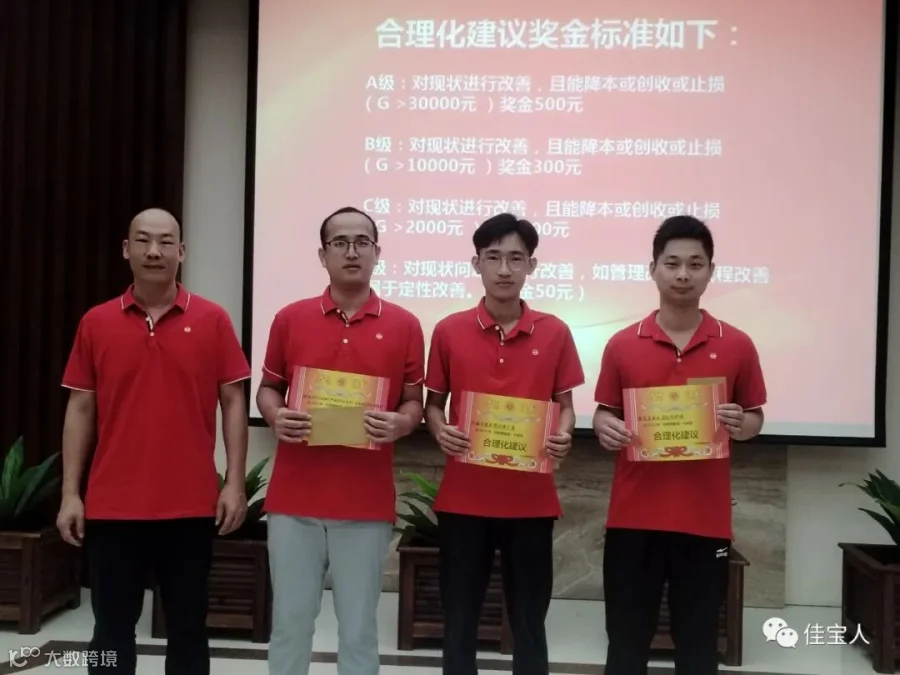 集团品质管理部经理丁度高为获奖代表者林培能、获奖者郭泽铭、获奖者黄奕名、尤丽群(获奖代领者陈伟杰)颁奖