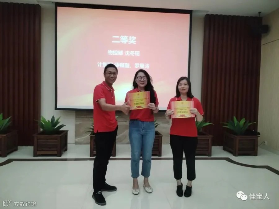 集团物控服务部经理兼项目经理贺为为获奖者代表薛银璇、获奖者沈冬瑶颁奖