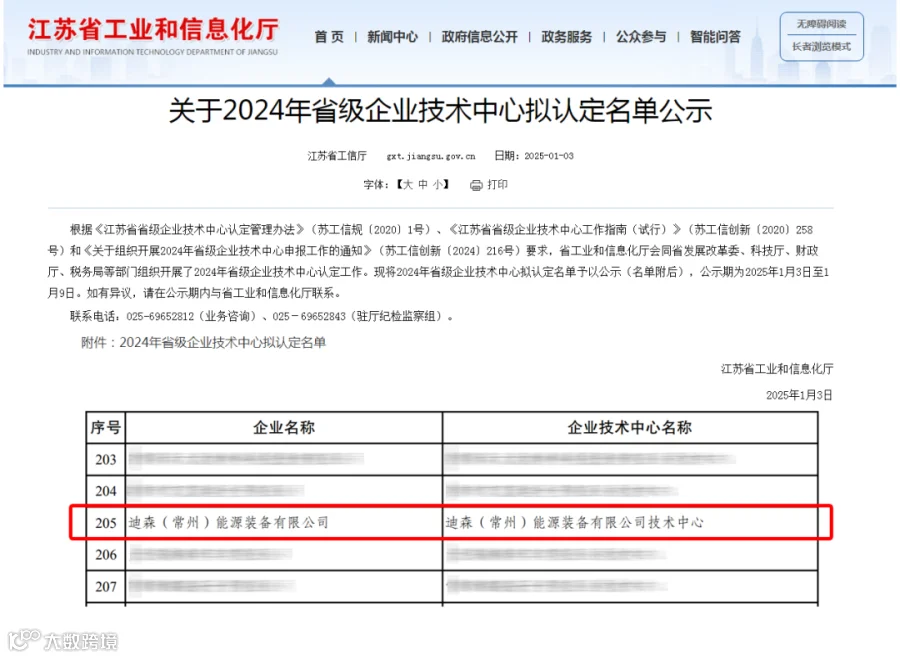 近日,江苏省工信厅发布了2024年省级企业技术中心拟认定名单公示,迪森(常州)能源装备有限公司(下称“迪森装备”)顺利通过江苏省省级企业技术中心认定!