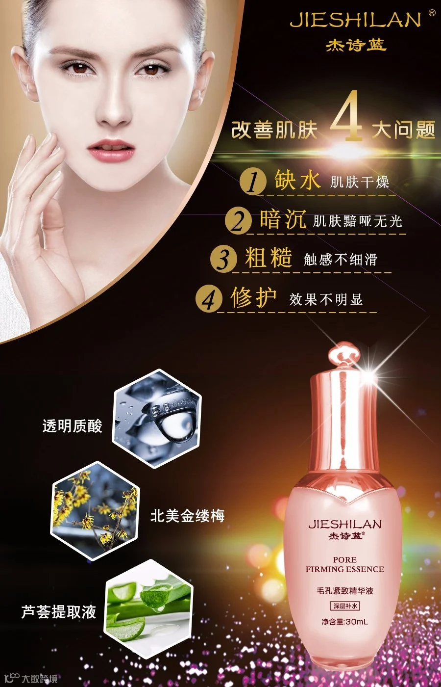收缩毛孔、紧致修复、深层补水,提亮肤色