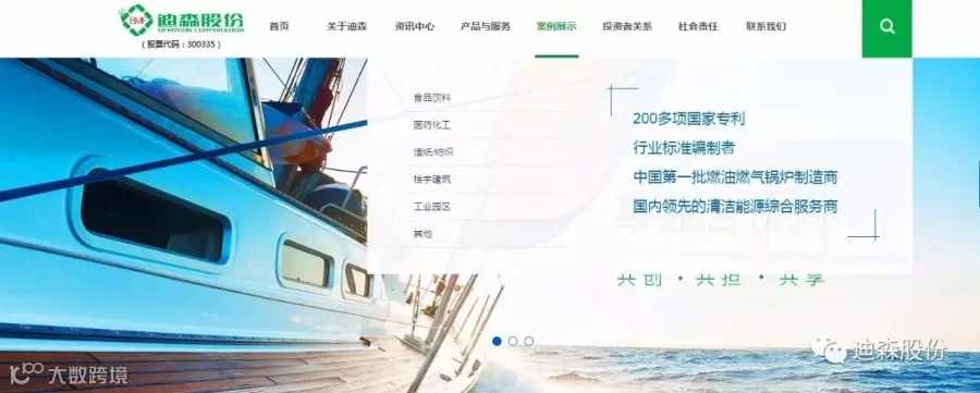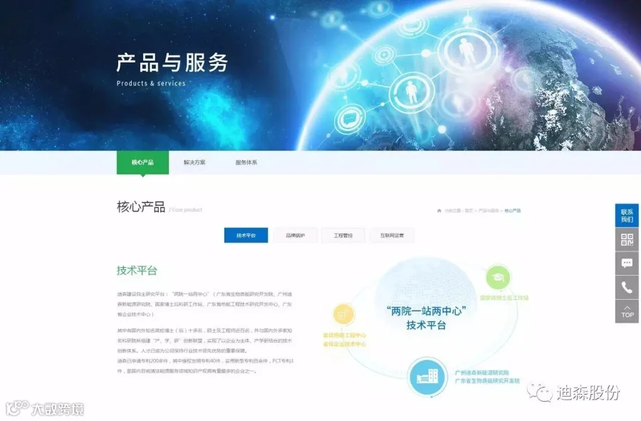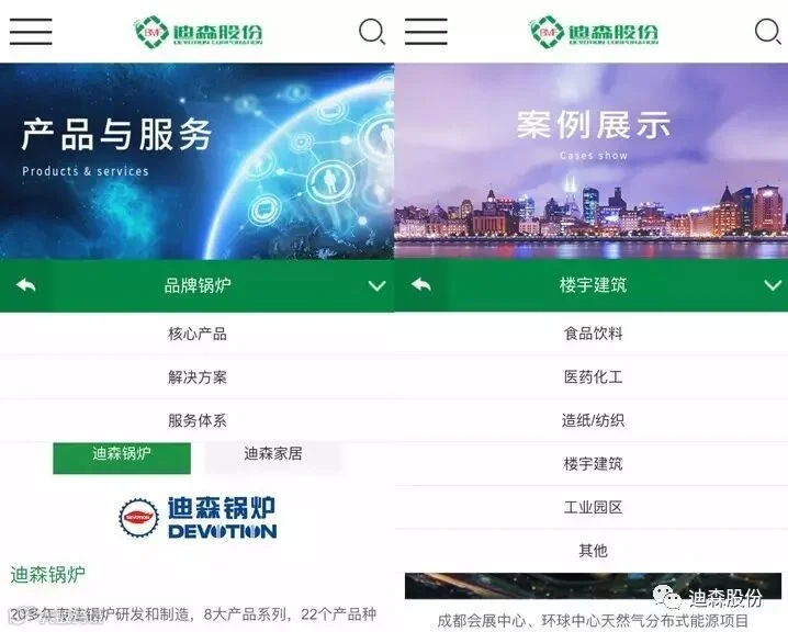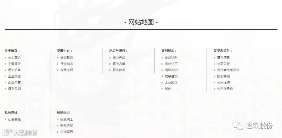 网站主要板块有“关于迪森、资讯中心、产品与服务、