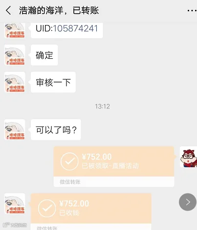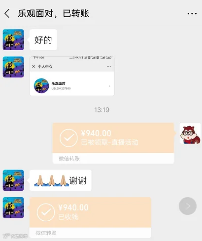 活动部分奖金转账截图▼