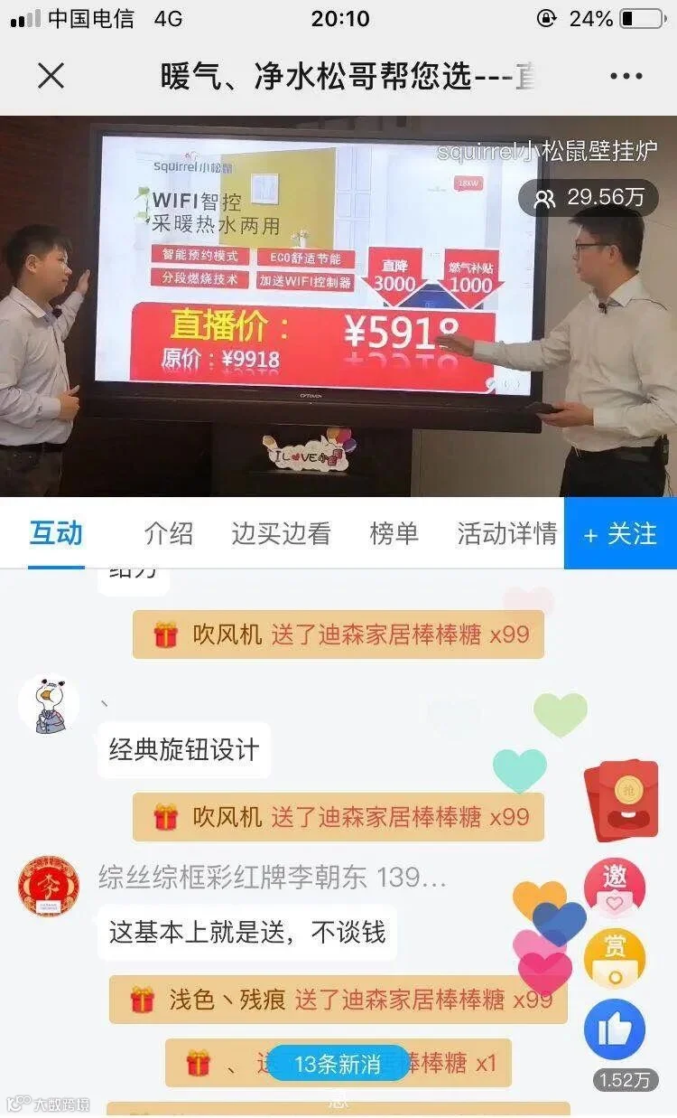 本次直播,松哥给大家带来了全屋采暖定制套餐方案,更有小松鼠C8和M2 PLUS两款特惠壁挂炉产品,主播为粉丝们争取了非常大的优惠福利,还有劳力特净水产品现场试饮。除产品价格优惠外,主播们在线申请延长售后服务保修年限,优惠力度空前,客服咨询不断,购买订单暴增。
