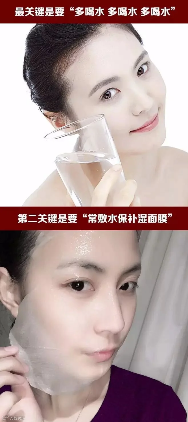 关于补水保湿,最关键的就是,多喝水,多喝水,多喝水!第二关键,就是常敷水保补湿面膜,有的朋友担心“面膜不是不能经常敷吗?”记住,小编说的是补水保湿面膜。