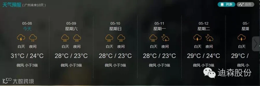 广州未来10天天气预报