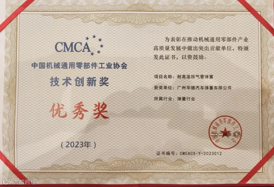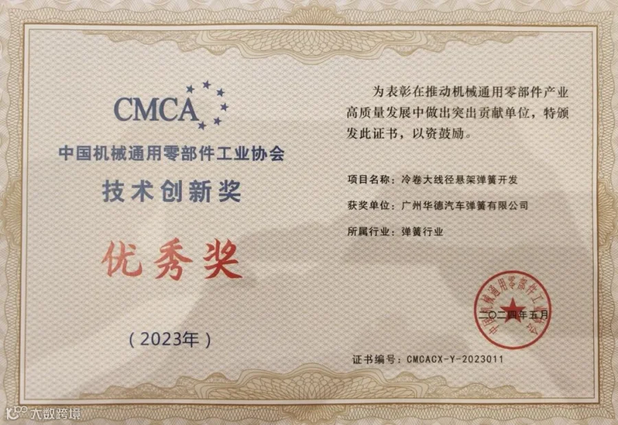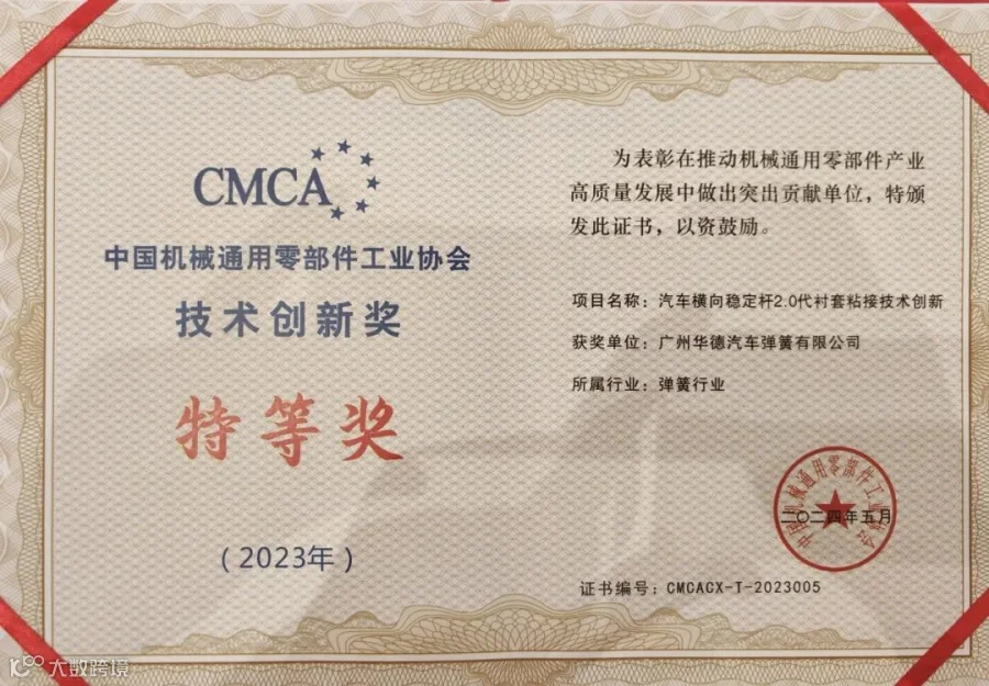 2023年,广州华德多个技术创新项目获得了行业专家的高度认可,并荣获中国机械通用零部件工业协会技术创新特等奖及优秀奖。