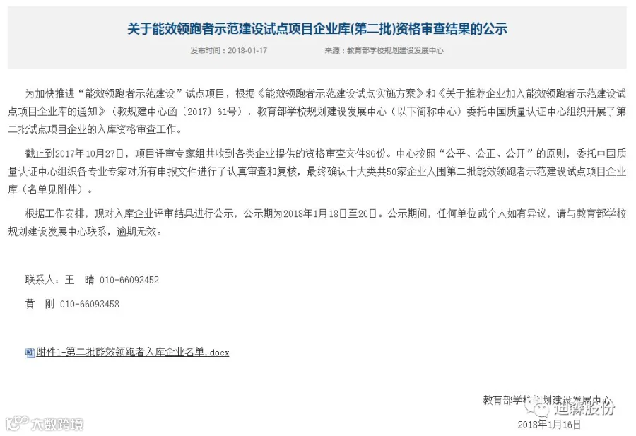 导读:广州迪森热能技术股份有限公司最终入围了包括暖通空调、其他节能改造专项和合同能源管理三项企业库,并将积极配合和推进教育部学校规划建设发展中心关于引导和支持学校实行节能技术改造、能源托管,打造绿色校园示范
