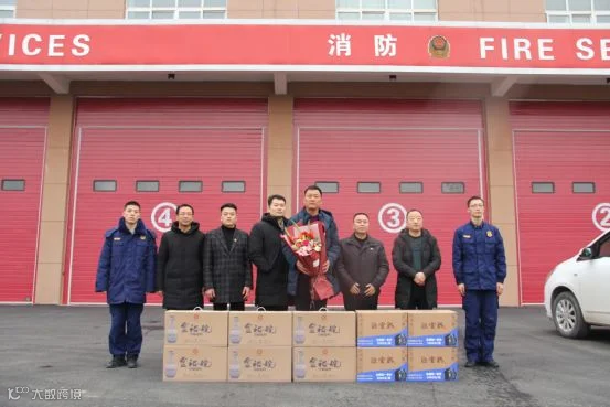 2019年1月2日,在新春来临之际,安徽省金裕皖酒业有限公司董事长段兆法携陋室铭事业部总经理段志红、大户部部长田子坤,在东城管委会办公室主任李海金的陪同下,走访慰问界首市消防大队,为节日前夕仍坚守在一线的消防官兵送去新春的祝福与诚挚的问候,受到了消防官兵的热烈欢迎。