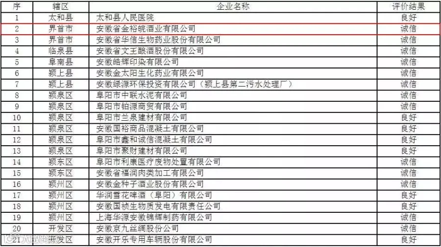 日前,我市通报了2016年度阜阳市企业环境信用评价结果,21家参评企业中,13家企业获评诚信企业、8家企业获评良好企业。这是我市首次发布企业环境信用评价,具体企业名单如下。