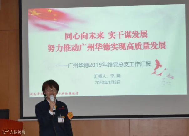 李燕书记作题为“同心向未来、实干谋发展——努力推动广州华德实现高质量发展”的党总支工作汇报。2019年,公司党总支在上级党委的正确领导下,以实际行动践行“五力”理念,促进企业发展,让党建成为看得见的生产力,推进党建工作与企业目标相融合,与企业管理相融合,与企业责任相融合。