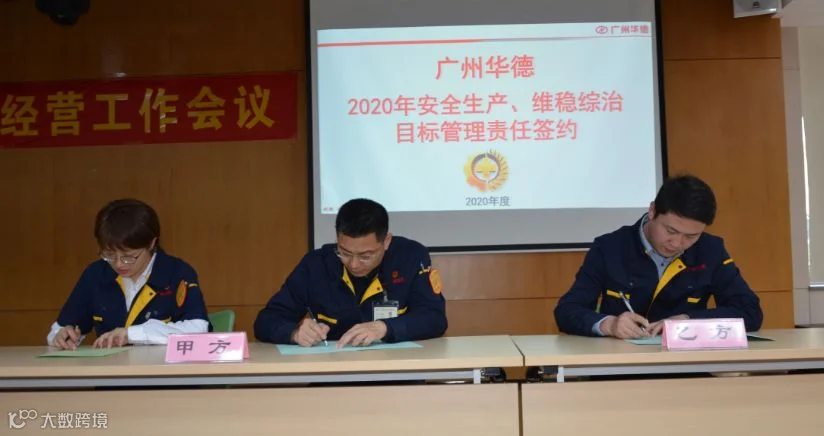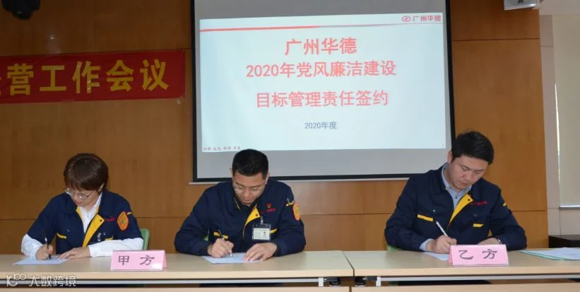 会上还进行了广州华德2020年廉政、安全、综治、计生签约仪式,周荣华总经理和李燕书记分别与各职能部门及郑州分公司签署责任书。