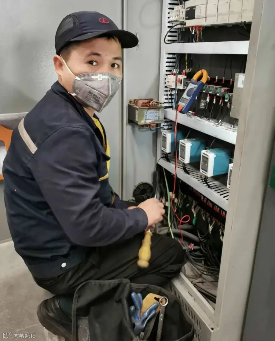 黄伟新同志正在维修设备