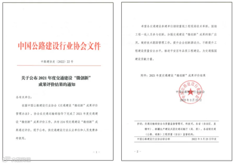中海广瀛多次使用SPMT模块智能移运技术整体驮运拆建桥梁,该工艺可以有效避免传统拆建桥带来的粉尘污染、噪音污染,更加绿色环保,综合经济效益和社会效益突出。该技术荣获2021年度中国公路建设行业协会 “微创新”成果评价。