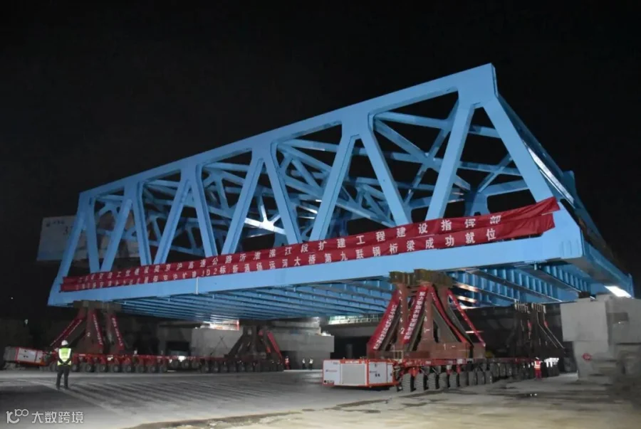 该项目是江苏境内首次采用SPMT模块智能移运技术架设桥梁,也是中海广瀛自去年在全省范围内首次应用SPMT模块智能移运技术进行快速拆桥后的又一创新突破。