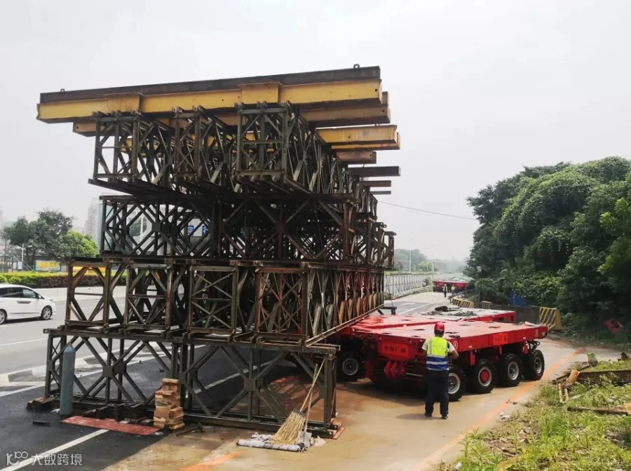 SPMT模块车进入驼梁支架下方