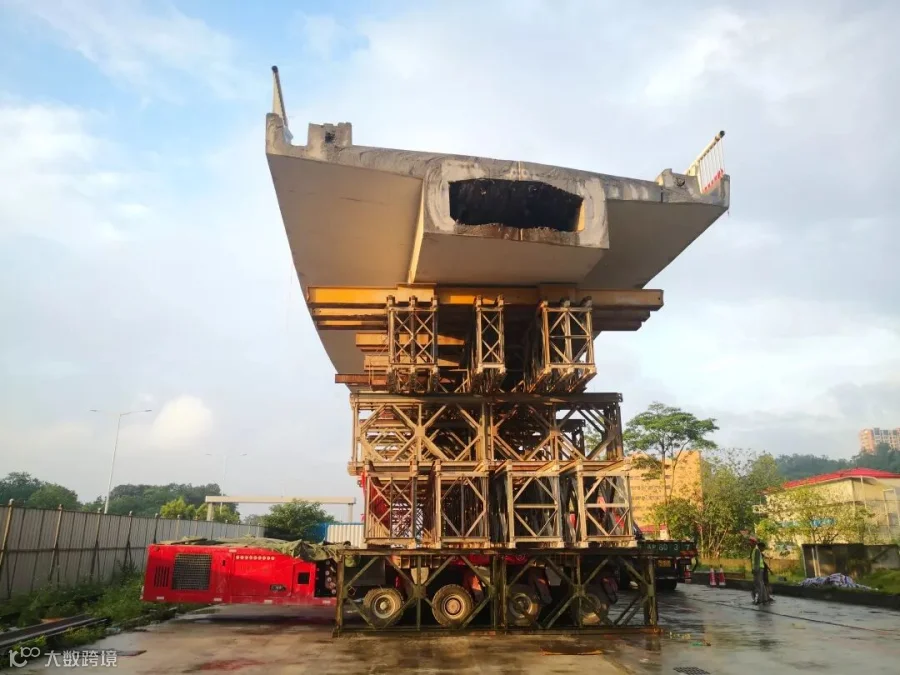 整座跨线桥拆除分为五段分开施工,最重段约300吨,每3天为一个作业环。