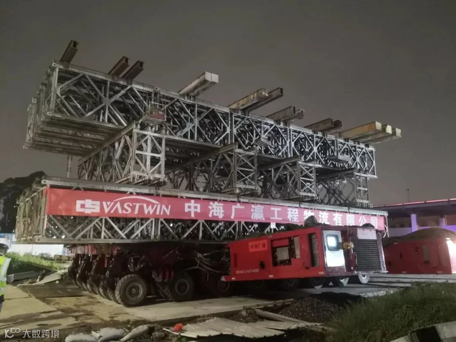 经技术人员作业时测量,驼梁支架转场过程中距离硬障余量最小20cm,桥段移运过程中距离硬障余量最小10cm,充分证明了中海广瀛完备的技术体系和操作水准。
