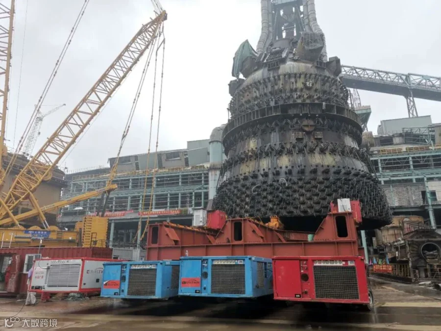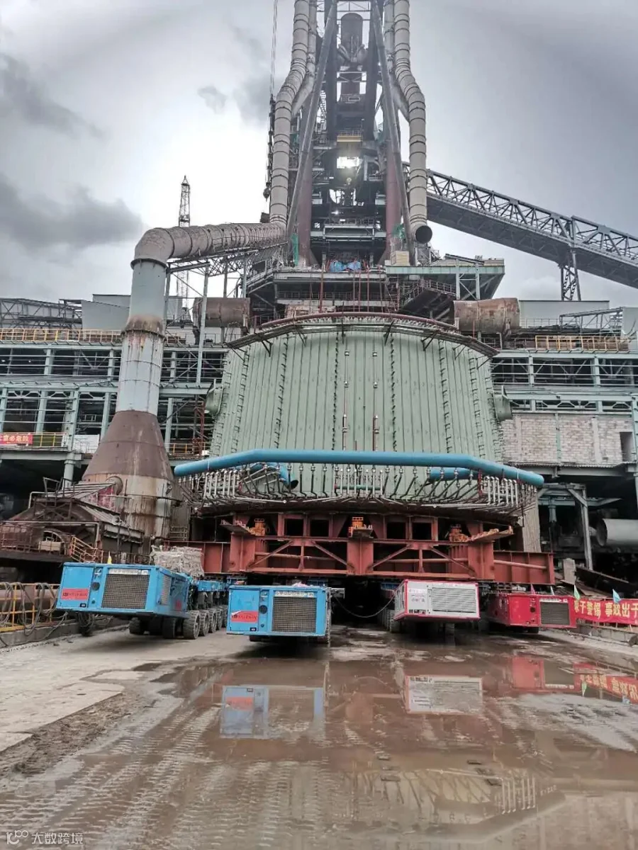 近日,我司完成了宝钢二号高炉大修改造工程中的主工艺流程,利用SPMT与滑移设备结合,完成共计8件炉体分段的拆除与安装。