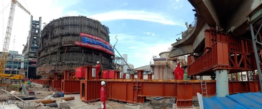 本次大修使用了全新的快速大修施工工艺线路——利用滑移设备配合SPMT施工工艺,使得高炉在不放残铁的情况下整体分段拆除,完成最重件约7260吨炉缸段一站式滑移,滑移距离逾140米,在中国诸多高炉大修中属于首次超重长距离滑移。