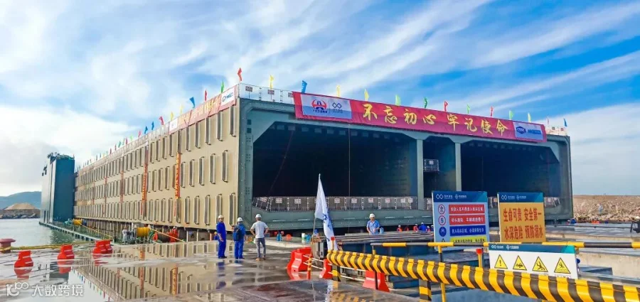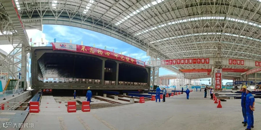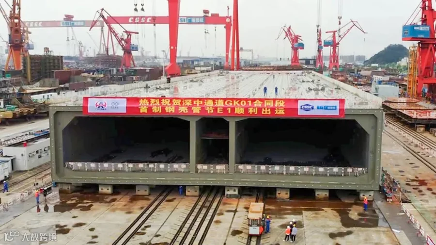 深中通道沉管隧道是世界首例特长、特宽、特深的海底沉管隧道,而且还是世界范围内首次大规模采用钢壳混凝土结构的钢壳制造,因此,这次出运的管节钢壳也是世界建成的最大的沉管隧道钢壳。