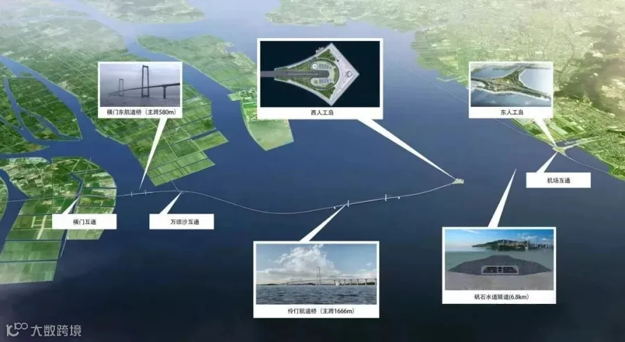 深 中通道位于珠江三角洲核心区域,北距虎门大桥约30公里,南距港珠澳大桥约38公里,是集“桥、岛、隧、水下互通”于一体的世界级集群工程。
