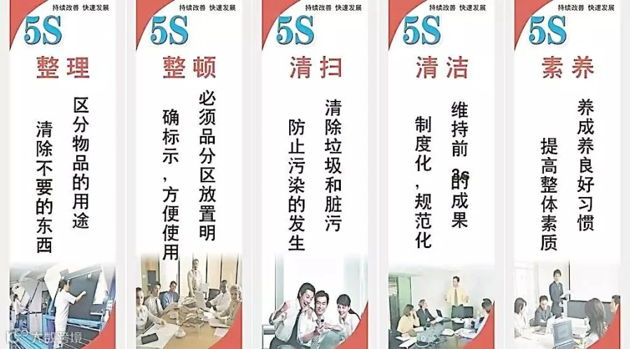 一一5S中的前3S:整理、整顿、清扫;它并不是简简单单的过程,不仅仅是将东西摆好,将设备擦干净,将卫生做清洁还有所谓的大扫除,而是员工对自己工作的回顾、总结、改进和提高,然后通过持之以恒,不间断的进行,使之成为一种工作习惯,进而形成良好的工作作风,提高个人素养,提升公司形象,在潜移默化中转变员工的素养,培养员工崇高的职业精神,并最终达到5S管理的最终目的。