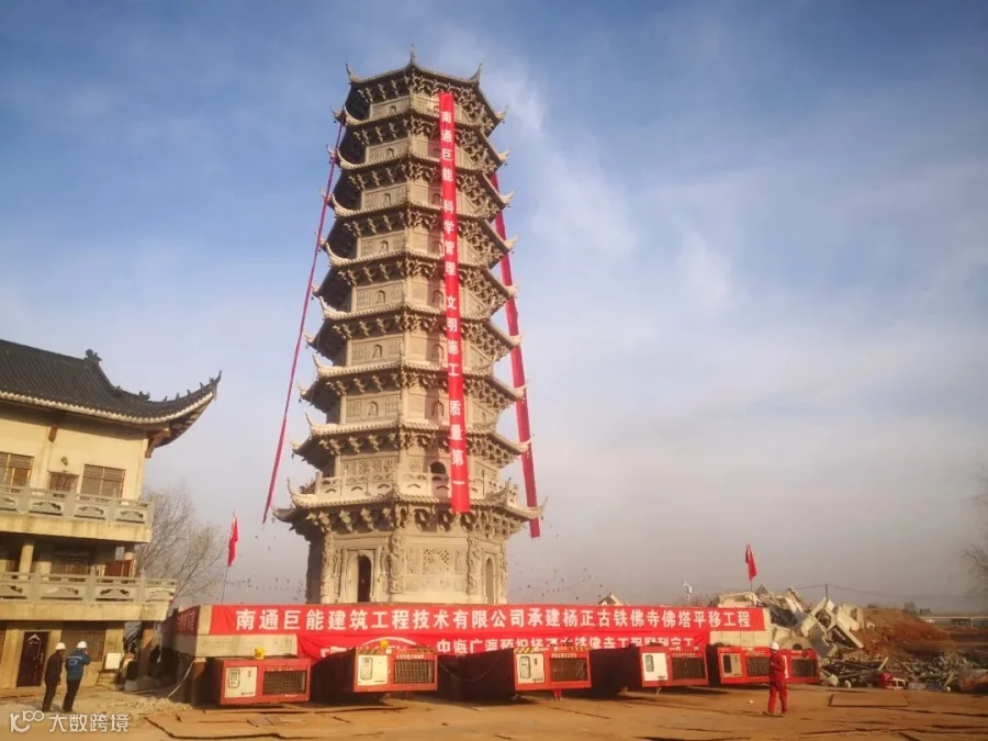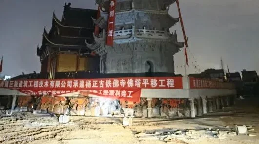 近日,继武汉杨正古铁佛寺大雄宝殿顺利平移之后,佛塔平移工程也如期顺利完成,让我们一起看看这“行走”的佛塔吧!