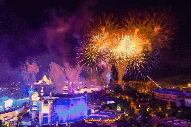 最后来到夜晚,压轴节目烟花大汇演十分惊艳,其中还包含着水上飞艇表演、无人机表演、巨幕投影等,场面十分壮观。无人机排列成各种图案,时而是飞鸟时而是鲸鱼或蝴蝶,其精巧程度令人赞叹。烟花极尽绚丽,在夜空中腾起绽放,瞬间点亮整个夜空,一眼望去满是火树银花的景象,人群中不停爆发出浩大的欢呼声和热烈的掌声。