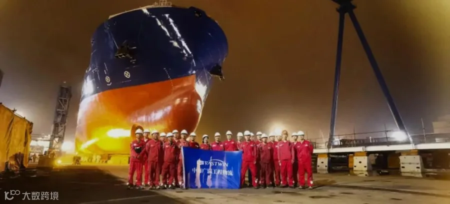船舶总重量为6180吨,含工装总重7271吨,中海广瀛项目组在确保安全的前提下,抢时间、赶进度,研究合理可行的运输方案并反复计算验证,制定紧急事件应变策略;在资源紧缺的情况下,使用进口+国产共230轴线SPMT同步运输进行整船滚装。