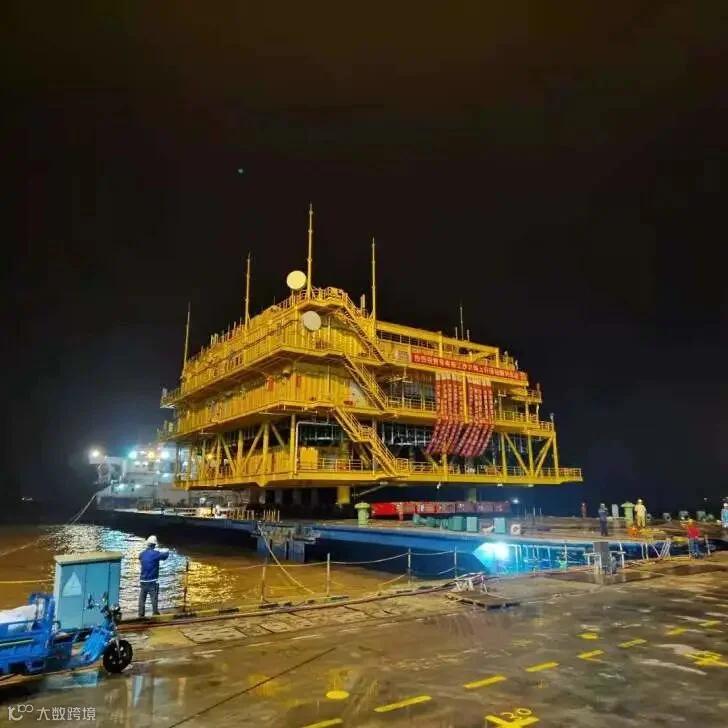 此次升压站项目,我司负责全程物流运输、工装设计及驳船装载。各阶段环环紧扣,困难重重。技术团队在设备建造时就多次与设计院进行技术交流并持续跟进,不断完善运输方案;业务团队多次协调车、船以及码头,以创造有利的运输条件;操作团队不眠不休,全力抢抓时间节点,保证运输安全。经过多次困难攻克,终于顺利将升压站上部组块成功发运、交货,完成项目最终目标。