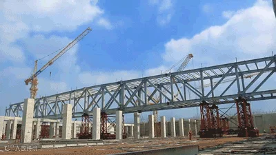 ● 作业时间短,从组装桁架位置到落位位置行走时间短,两端同时进行桁架组装。