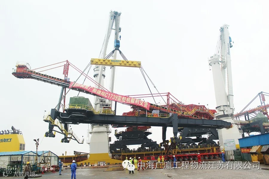 面对强有力的竞争对手,我司的方案力压群雄,脱颖而出,成功克服了转运场地空间狭隘,运输稳定性较差,码头面承载力不足的多种不利因素。该项目开创了国内首次使用SPMT运输装船机的先河,为将来同类产品服务提供了另一种装船方式,开辟了同类产品的新型平地建造方式。