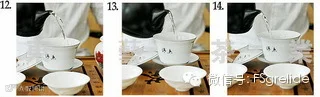 12--14.倒掉洗茶的水,沿着盖碗壁沿四周,将开水注入。