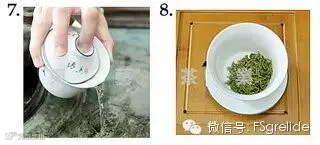 7--8.洗茶,好的碧螺春的茶毛很多,泡茶前先洗茶,洗去茶毛,洗茶速度要快。