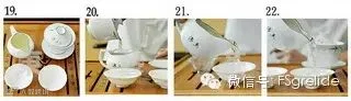 19--22.冲泡3-4秒之后即可出汤,铁观音讲究茶汤分离,将公道杯中的茶汤分到阔口杯中。