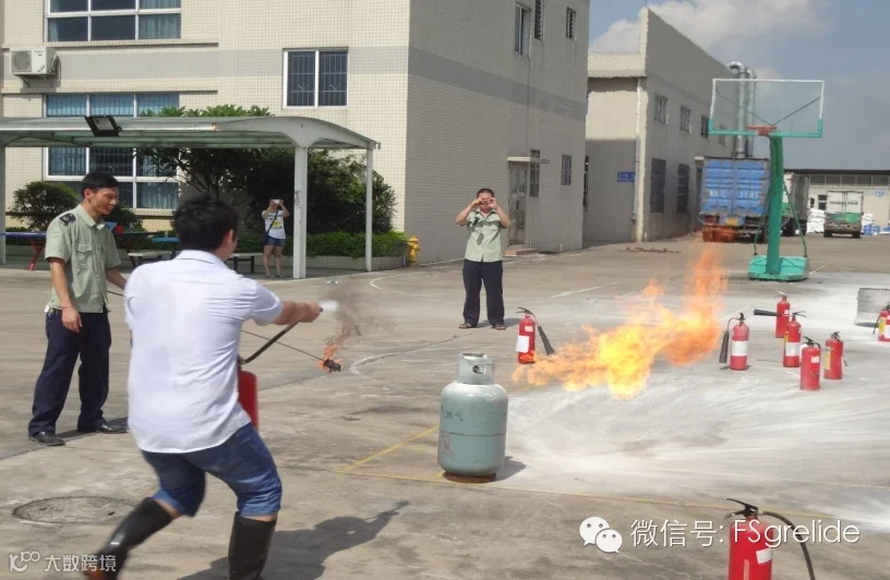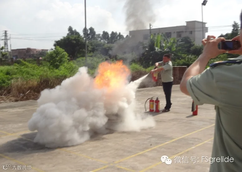 培训的第二部分在公司的篮球场进行。丹灶消防大队队长对不同类火灾的扑救和灭火器的正确使用方法进行讲解和演示,并让员工亲身体验操作。