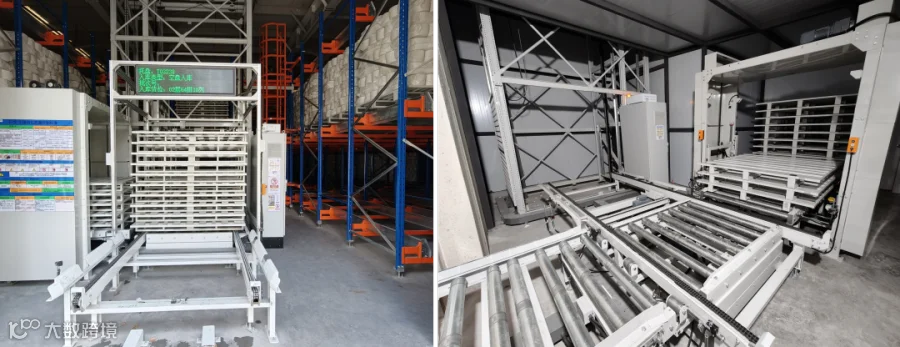 立体库配备连廊配套、四向穿梭车、AGV、叠盘机等自动化设备,并集成了WMS、WCS等多项信息系统,实现仓储物流的智能化作业。