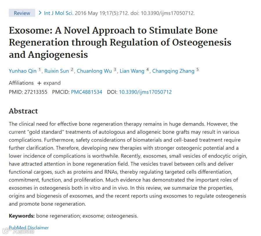 3.Exosome: A Novel Approach to Stimulate BoneRegeneration through Regulation of Osteogenesisand Angiogenesis