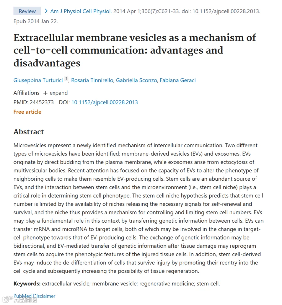 2.Extracellular membrane vesicles as a mechanism ofcell-to-cell communication: advantages anddisadvantages